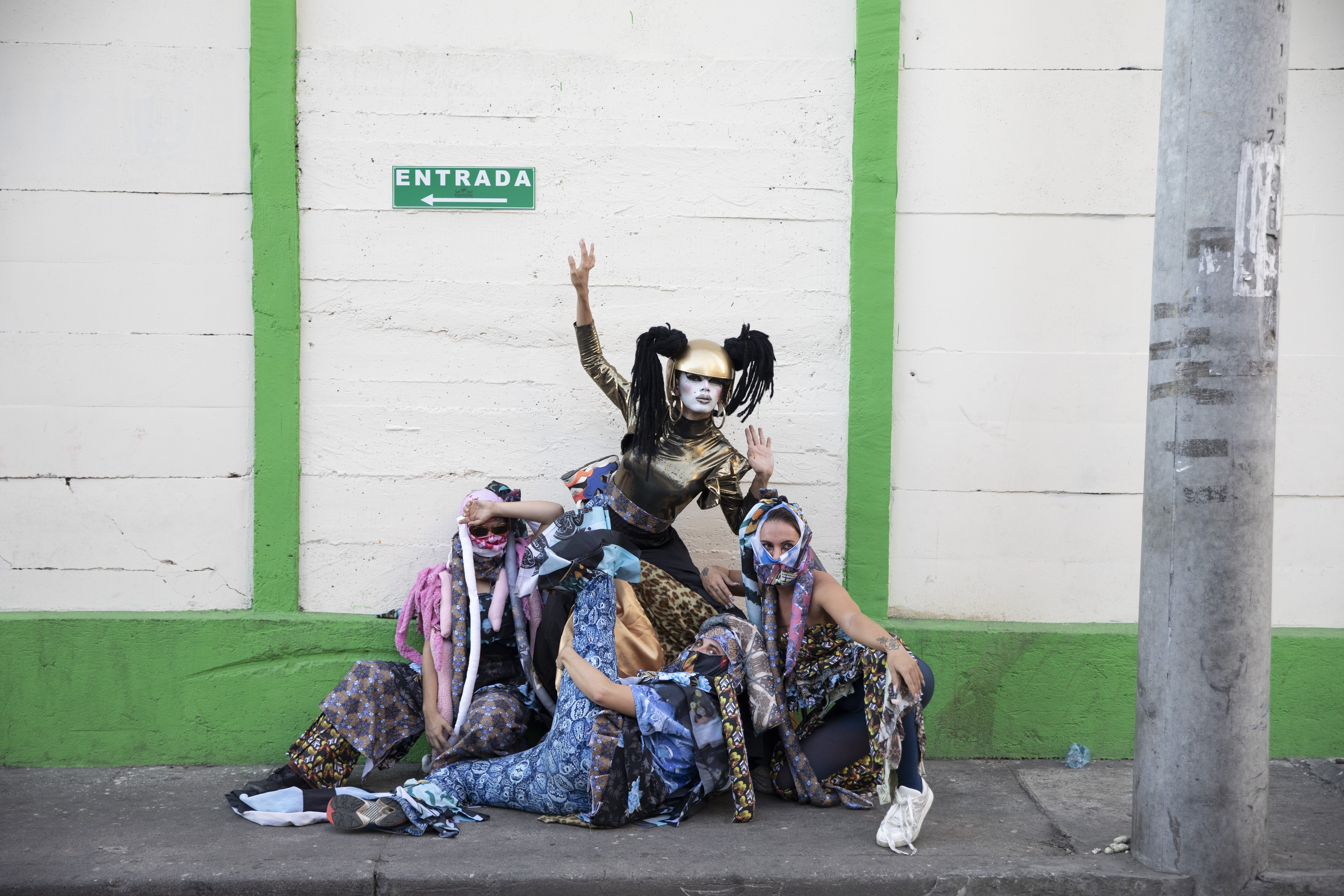 Set in a near-future dystopian world overrun by corrupt techno-totalitarianism, CRIPTO SIRENAS features a new cycle of works by Anna Ehrenstein, Sunny Pfalzer, Lucy Tomasino, and Alexa Evangelista. Utilizing somatic writing sessions and free-body movement workshops, the artists leverage the politics of collaboration to project a world not-too-far from our own, which has been ravaged by an unfettered and rapacious technology industry. Simultaneously a satirization and cautionary tale, the works in this exhibition use the narrative of an antagonistic "crypto ballerina" who acts as a savior in a fictional technofascist society, offering artistic strategies of resistance and perseverance in the face of real-world technofascism. Drag, dance, and a fluid and moist dreamscape function as the blades cutting through the oppressive block chain. The exhibition displays the artists’ joint vision of the near future, unveiling the imaginary country El Liberador, ruled by an authoritarian tech-solutionist president who is also the CEO of the country’s biggest tech firm, BETA.